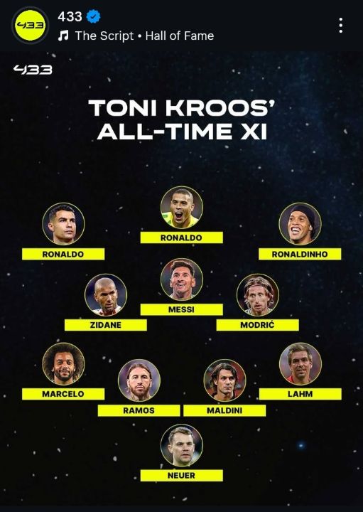Ο Toni Kroos, είναι ένας από τους καλύτερους μέσους στην ιστορία του ποδοσφαίρου. Η απουσία του στα γήπεδα φαίνεται, με τον κόσμο να συγκινήθηκε στο last dance του τόσο στην Ρεάλ Μαδρίτης (1 Ιουνίου 2024), αλλά και στην εθνική Γερμανίας (5 Ιουλίου 2024). Μέσα από τα τόσα χρόνια καριέρας (17), έχει μοιραστεί τα γήπεδα με πολλοί καλούς παίκτες. Πρόσφατα, ανακοίνωσε την δικιά του All time XI, από την οποία δεν λείπει τίποτα.